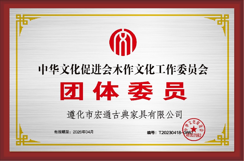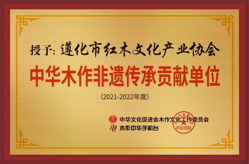 遵化紅木文化產業協會會長單位、中國傳統文化促進會紅木專業委員會副主任單位